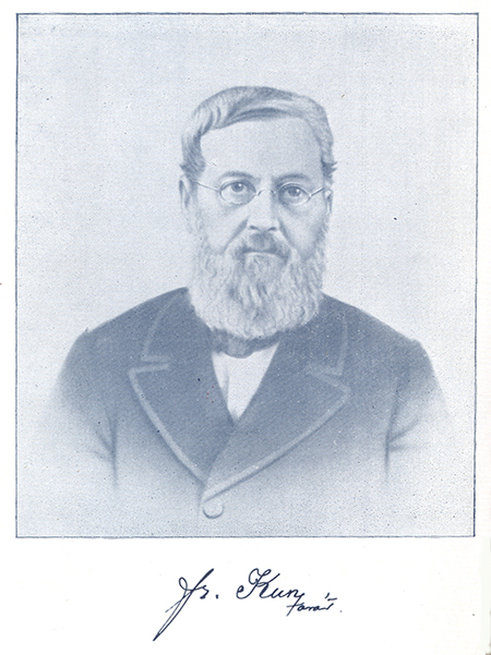 Francis Kun was minister of the Czech-Moravian Brethern Churh near Ely, Iowa in the years just before the turn of the twentieth century. He is said to have been the first missionary among the Czech peoples in the midwestern states. He was born in Javornik in Moravia in 1825. His father and grandfather were ministers as well. His father gave him private instruction in languages and in addition to Czech, he learned German, Magyar, Latin, and Greek. At the end of his life he could speak and write twelve languages, according to one account. He was ordained in 1849 in the Reformed Church of Moravia and served at a church in Miroslava, Moravia until 1856, when he came to America.