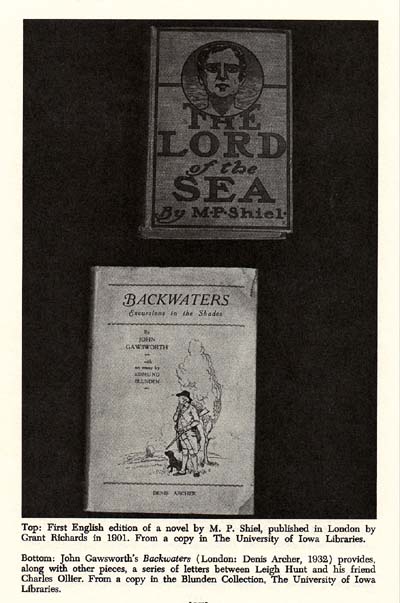 In his foreword to Shiel's Science, Life, and Literature Gawsworth tells how in 1931, when a 19-year-old publisher's clerk, "imbued with a fanatic literary enthusiasm," he wrote to Shiel, embarking on a collaboration that was to last for 16 years.