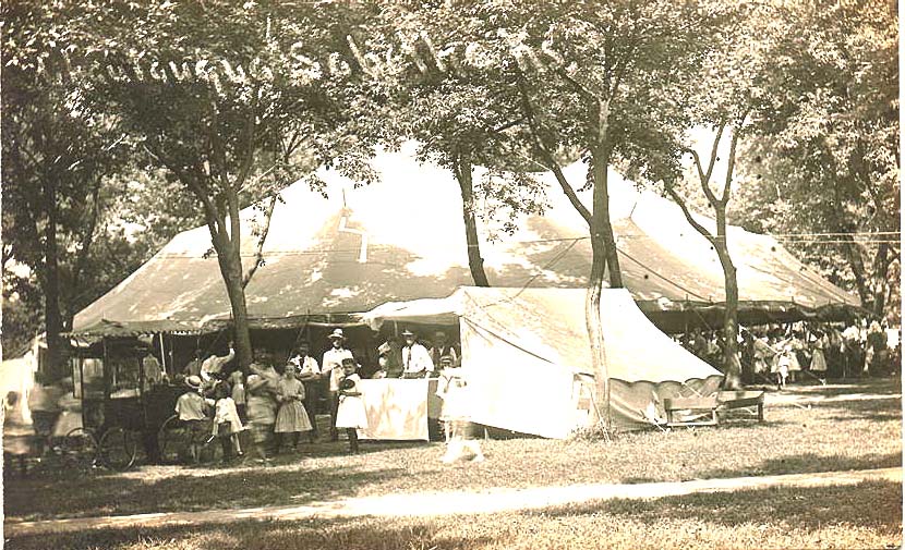 Scans of three postcards of the Chautauqua in Sabetha, Kansas in 1909.